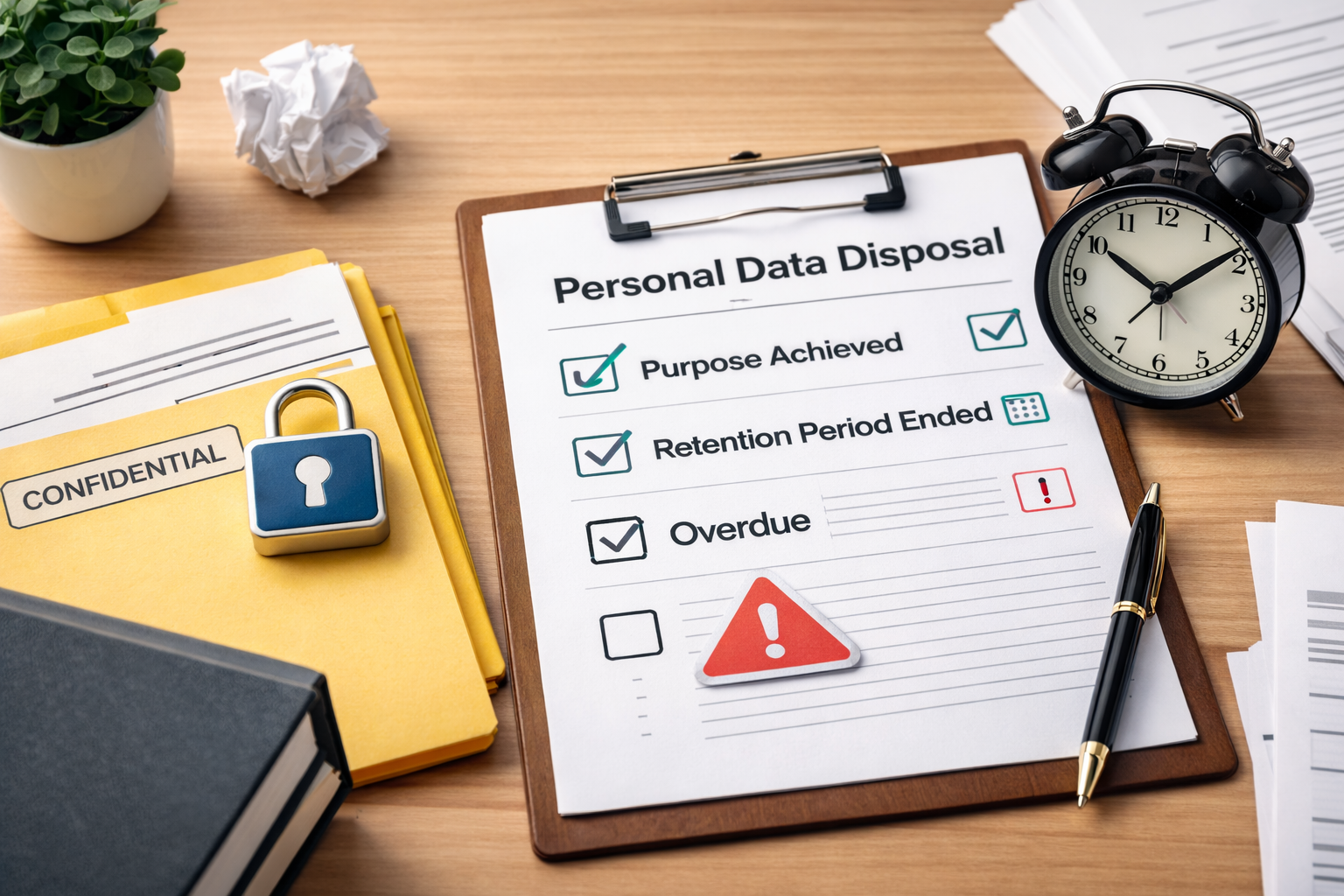 개인정보 파기를 판단할 때 가장 먼저 확인해야 할 요소는 개인정보를 수집할 당시 고지한 내용입니다. 개인정보보호법은 개인정보 수집 시 수집 목적, 수집 항목, 이용 및 보유기간, 동의 거부 권리와 불이익을 정보주체에게 명확히 고지하도록 요구하고 있습니다. 이 중 파기와 직접적으로 연결되는 요소는 수집 목적과 이용 및 보유기간입니다. 개인정보는 수집 목적이 달성되었거나 이용기간이 종료된 경우, 지체 없이 파기해야 하는 것이 원칙입니다. 여기서 ‘지체 없이’란 즉시라는 추상적 개념이 아니라, 실무적으로는 업무일 기준 5일 이내에 파기 절차를 완료해야 한다는 의미로 해석됩니다. 예를 들어 공모전 개최를 목적으로 개인정보를 수집한 경우, 공모전이 종료되고 수상자 선정과 상품 배송까지 완료되었다면 해당 목적은 달성된 것으로 봅니다. 이 시점부터 해당 개인정보는 더 이상 이용할 수 없으며, 별도의 보유기간이 설정되어 있지 않다면 파기 대상이 됩니다. 많은 실무자들이 파기를 연말 기준으로 판단하는 오류를 범하지만, 파기의 기준은 연말이 아니라 목적 달성 여부와 이용기간의 종료 시점입니다. 따라서 개인정보 파기는 사후적인 연말 정리 업무가 아니라, 수집 단계에서 설정한 목적과 기간이 사전에 결정하는 관리 행위로 이해해야 합니다.